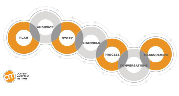 Il CMI ha predisposto, per chiarezza, un framework che ben descrive tutte le fasi e le componenti di cui si compone un’attività di content marketing ben strutturata.